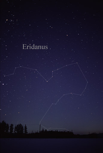 English: The northern two-thirds of constellation Eridanus, the river, as it can be seen by the naked eye in January in central Europe – above a southern horizon as most charts show constellations. |