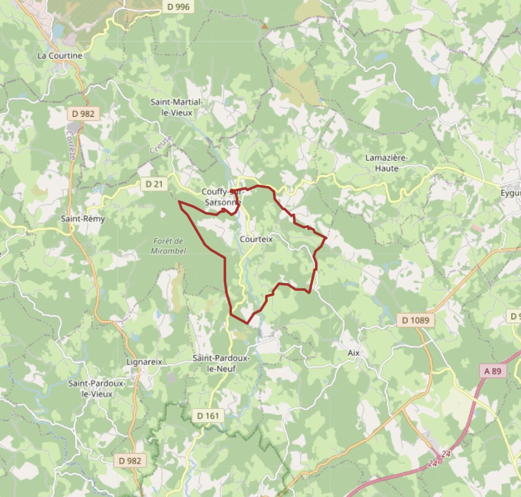 Français : Carte OSM de Courteix, Corrèze |