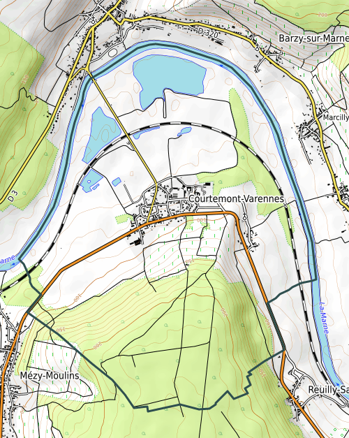 Français : Carte OSM de Courtemont-Varennes, Aisne |