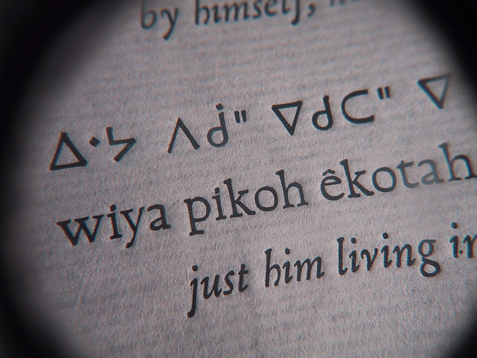 English: A close up of a proof from a freshly made Cree-language typeface. |