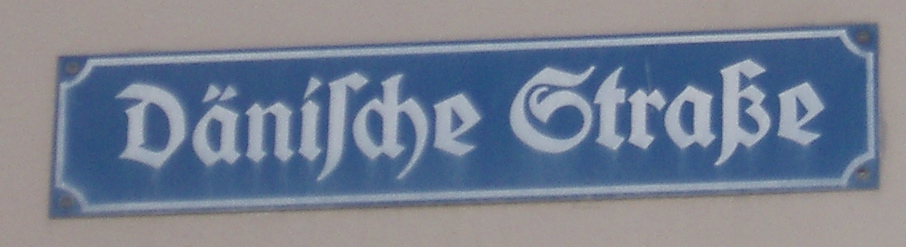 | Description | Modern street sign in Kiel for nostalgia reasons in Fraktur-letters. Dänische Straße = danish street. Other signs at bicycle holders on the street have meanwhile been replaced by signs in Antiqua. This sign was probably too high to be replaced. |