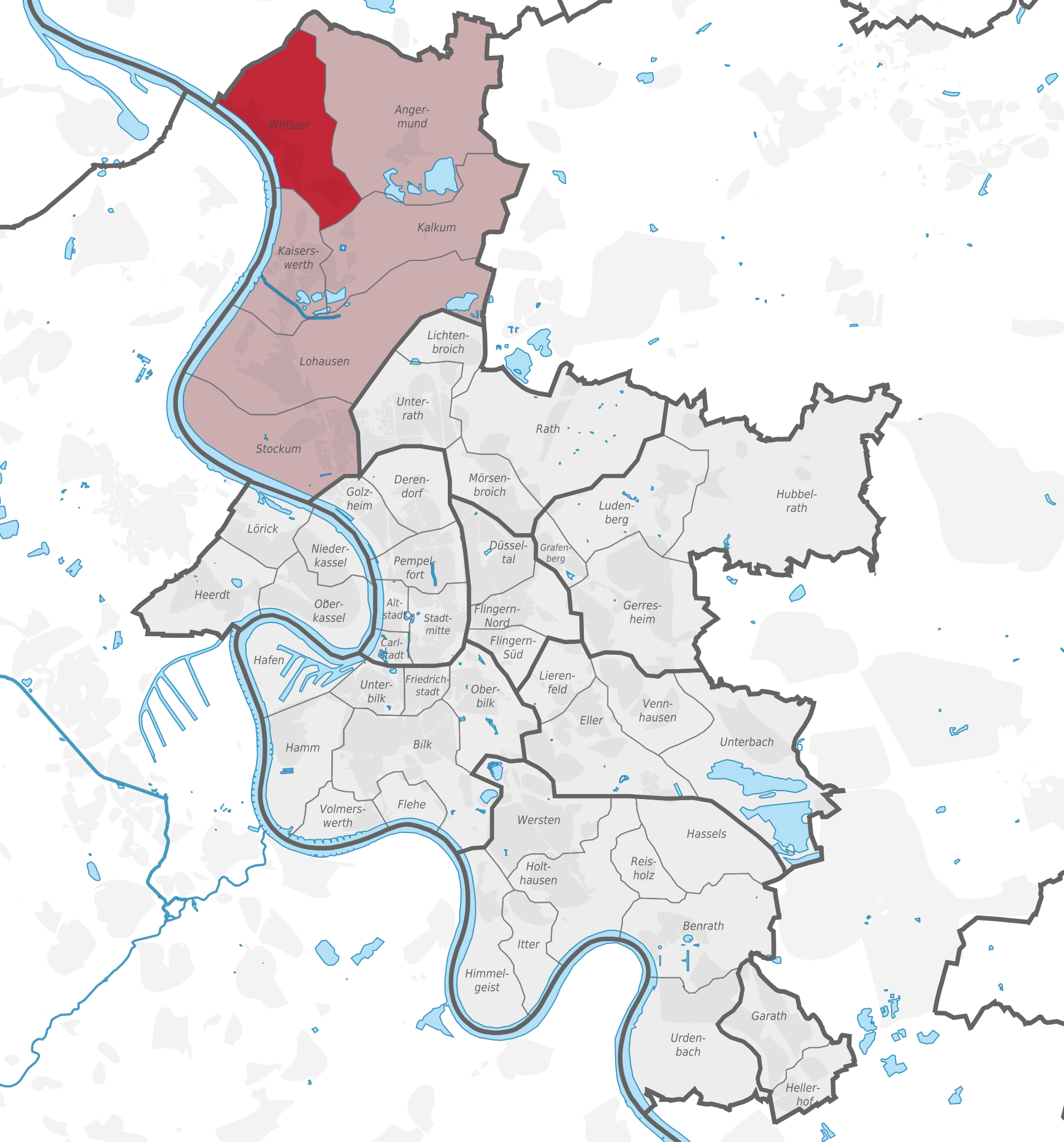 English: Location of borough xy (see filename) in Düsseldorf. |