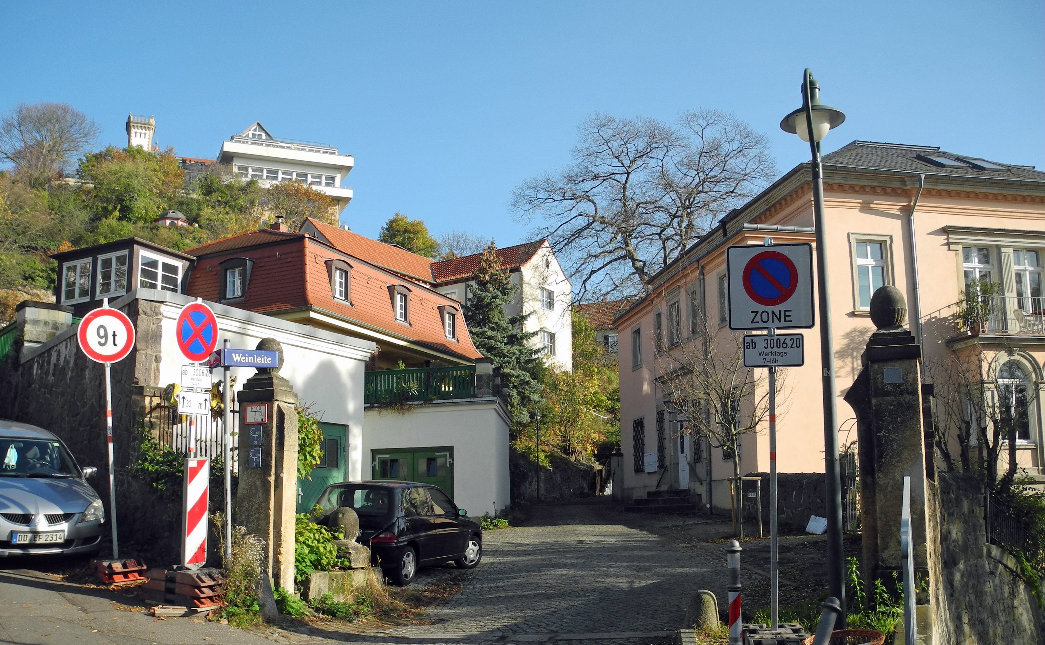 Deutsch: Blick vom Ende der Leonhardistraße in Dresden-Loschwitz in die Weinleite |