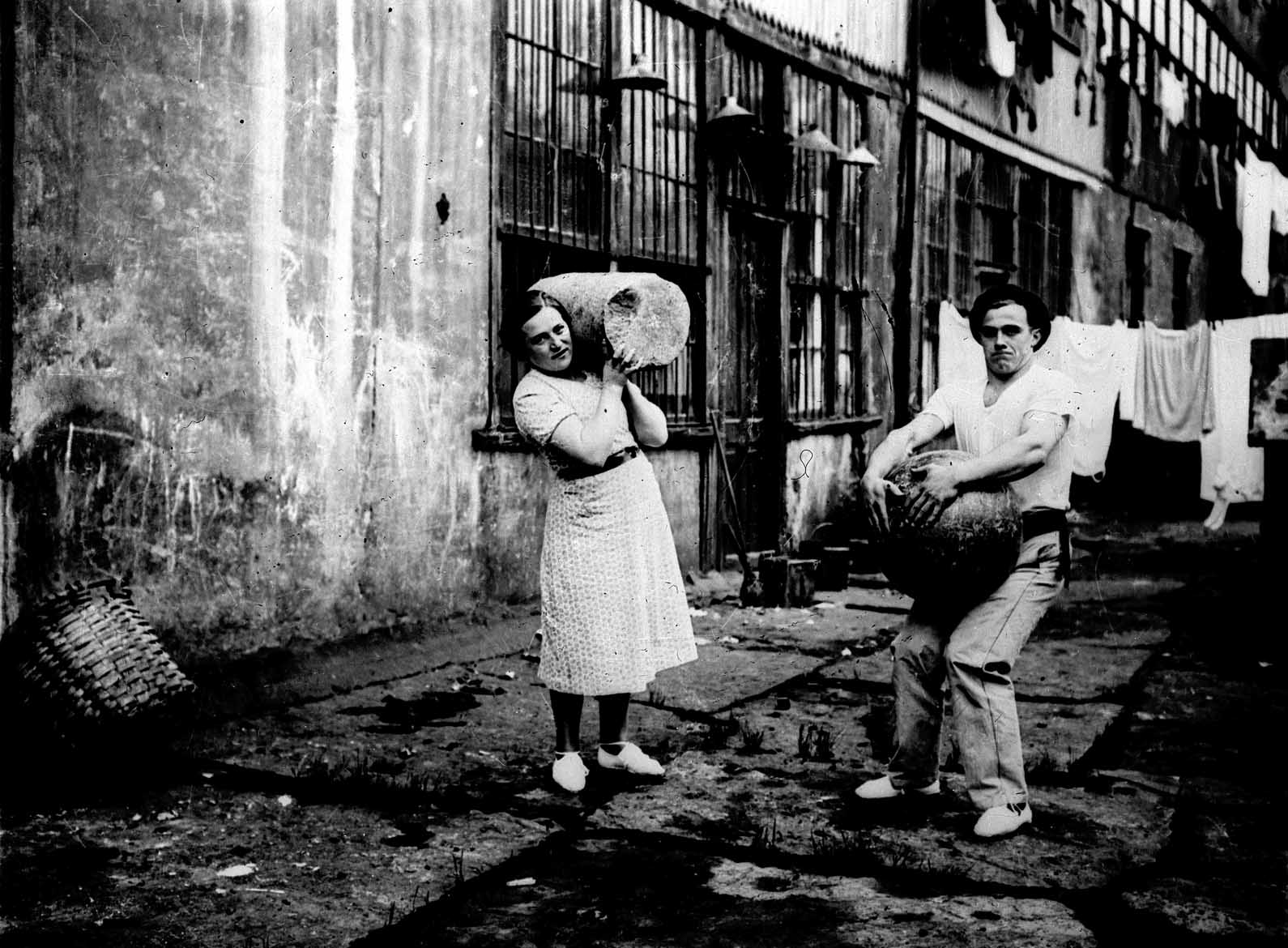 English: The harrijasotzaileak (stone-lifters) Damasa Agirregabiria and Errekartetxo (Santos Iriarte) |