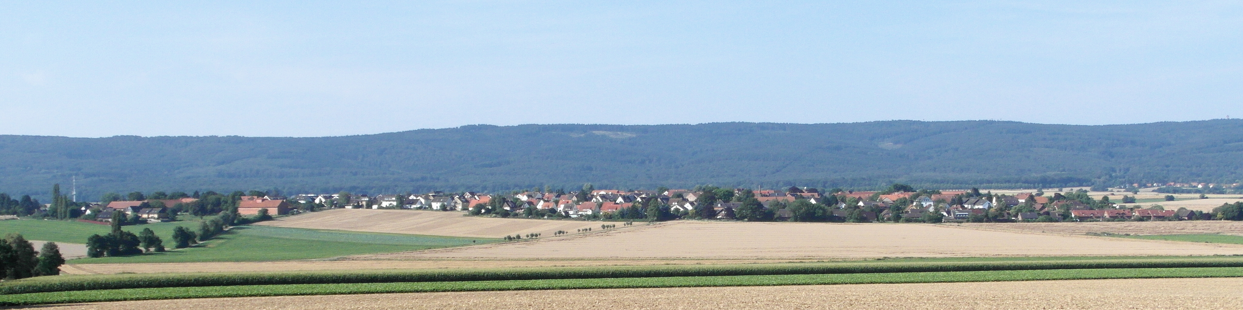 Deutsch: Blick vom Waldrand des Gehrdener Berg nach Südwesten auf Degersen. Im Hintergrund der Deister. |
