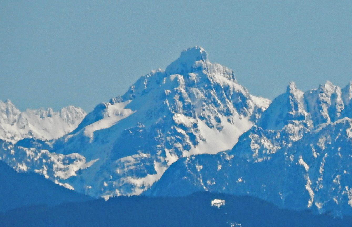 English: Del Campo Peak seen from Lake Stevens, WA with long lens |