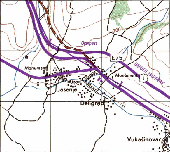 | Source | Kruševac, Serbia, Sheet 3282 II, 1:50,000 Topographic Maps Series M709, Edition 4, 1995, U.S. Defense Mapping Agency |