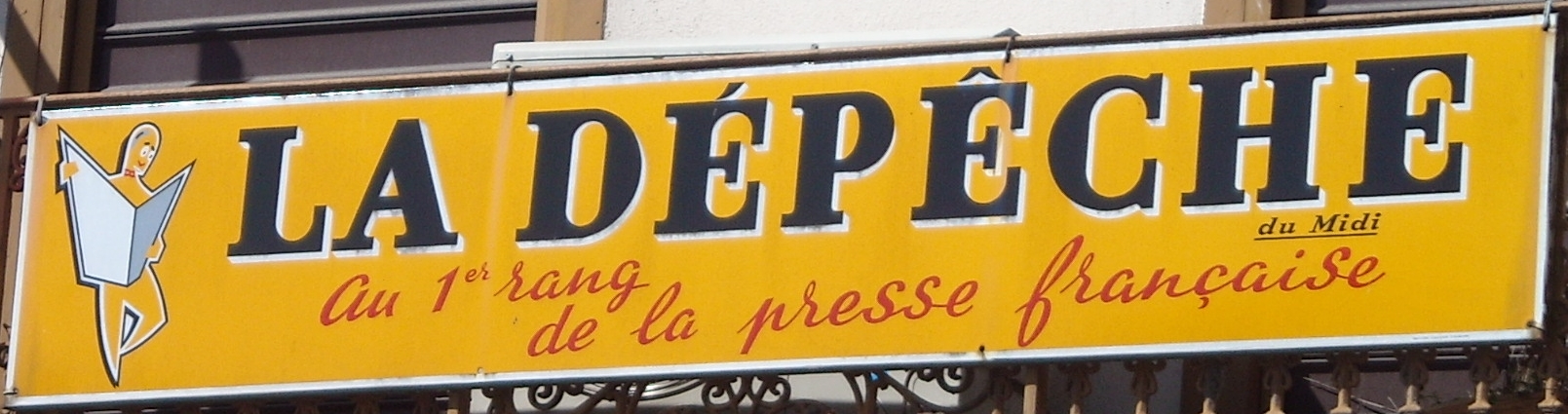 Français : Publicité pour la Dépêche du Midi au dessus d'un café dans l'Ariège (Midi-Pyrénées, France). |