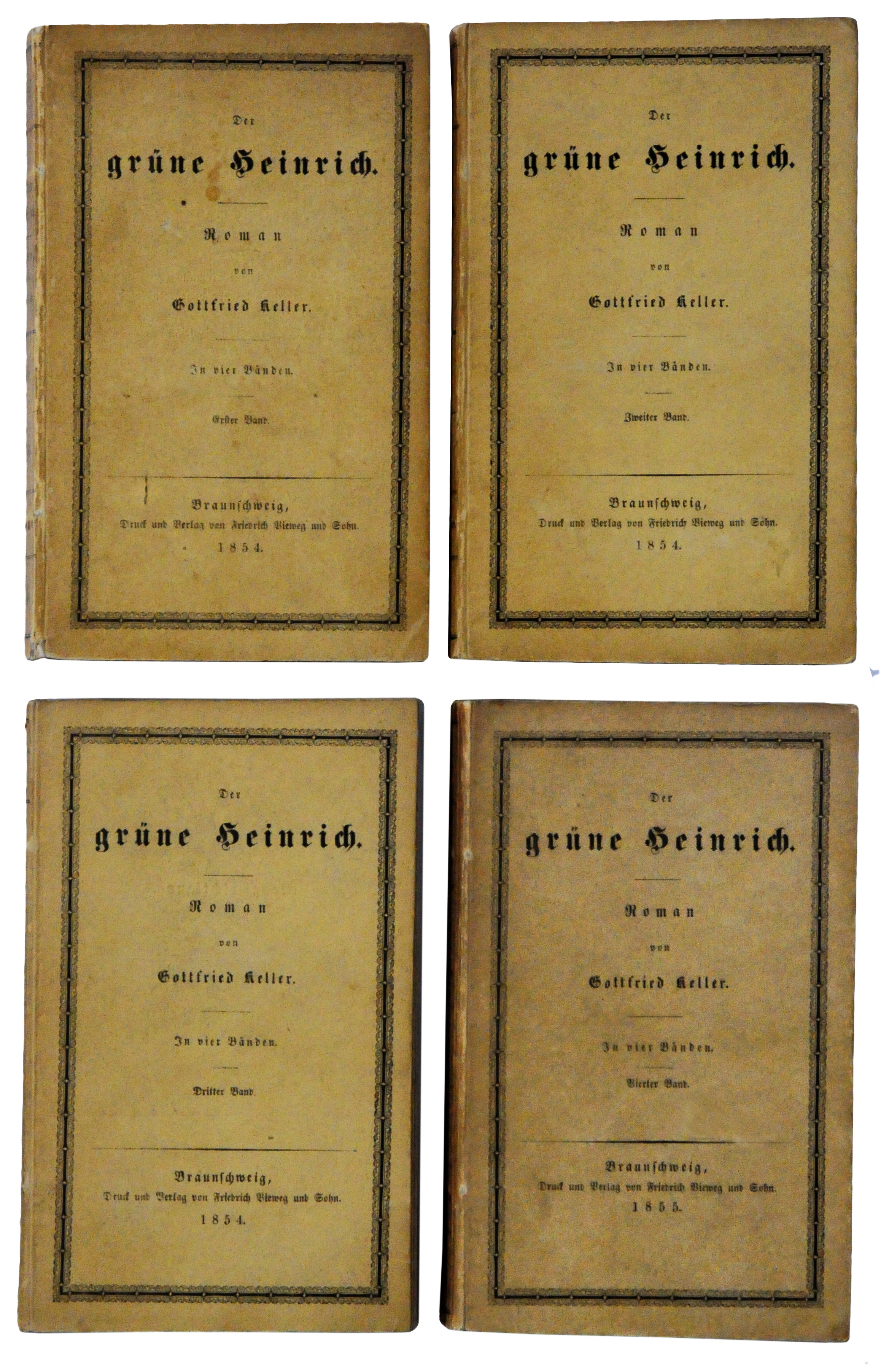 Braunschweig: F. Viehweg und Sohn, 4 Bde. 1854/55: 396 + 456 + 359 + 483 Seiten; Wilpert/Gühring² 9 Erstausgabe/Erstdruck; Original-Pappbände des Verlags, kenntlich an den Verlagsanzeigen auf den Hinterdeckeln; Vorderdeckel 16,7 x 10,5 cm. |