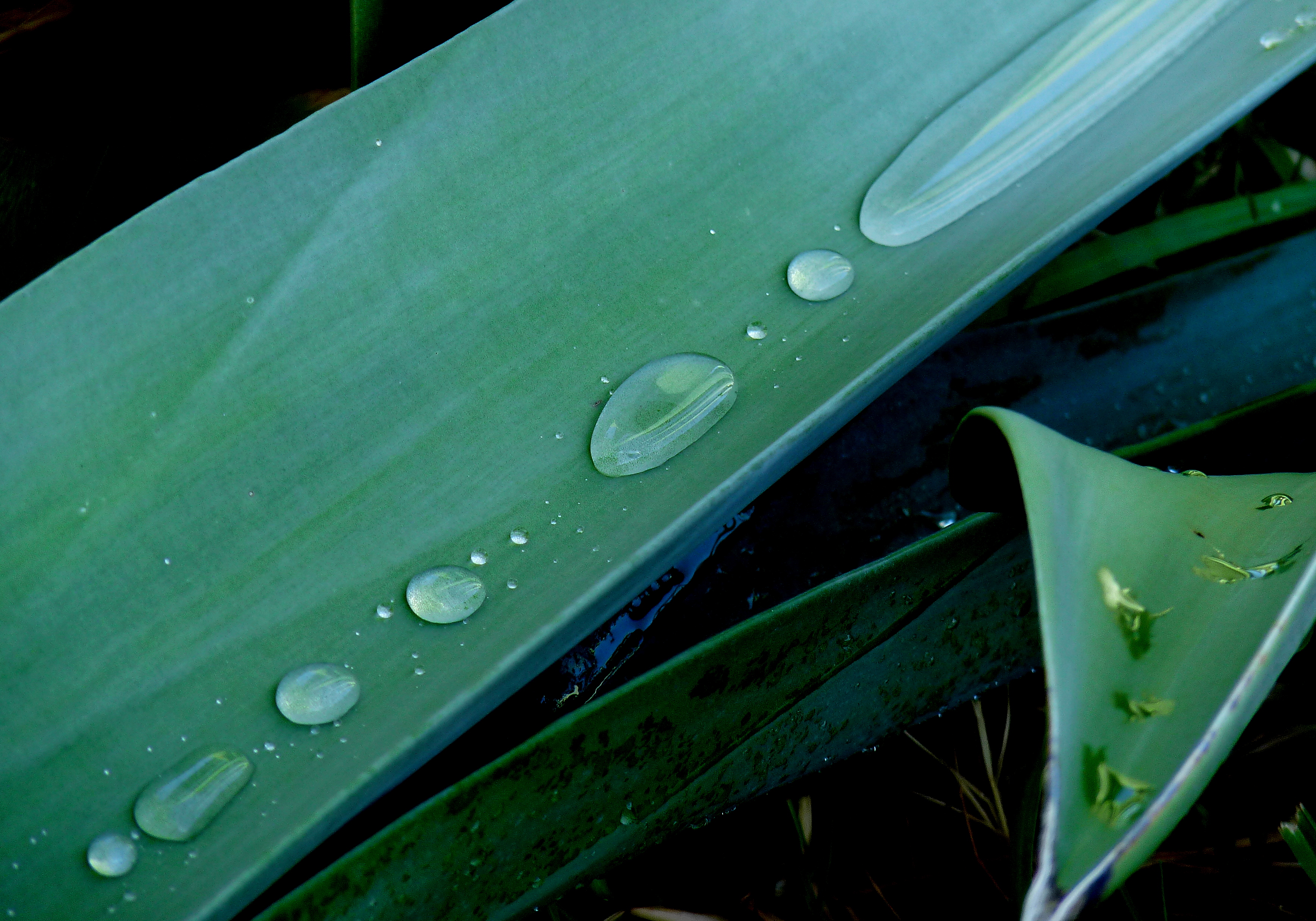 English: The image represents a closeup of an agava leaf with water on it. |