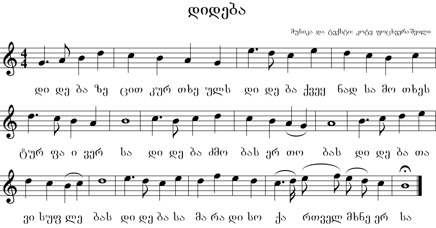English: National anthem of Georgia from 1918 to 1920, and from 14 November 1990 to 23 April 2004, composed by Kote Potskhverashvili (1889-1959). |