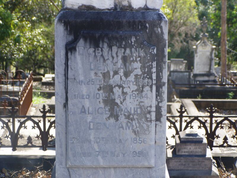English: Headstone of Digby Denham at Brisbane's South Brisbane Cemetery |