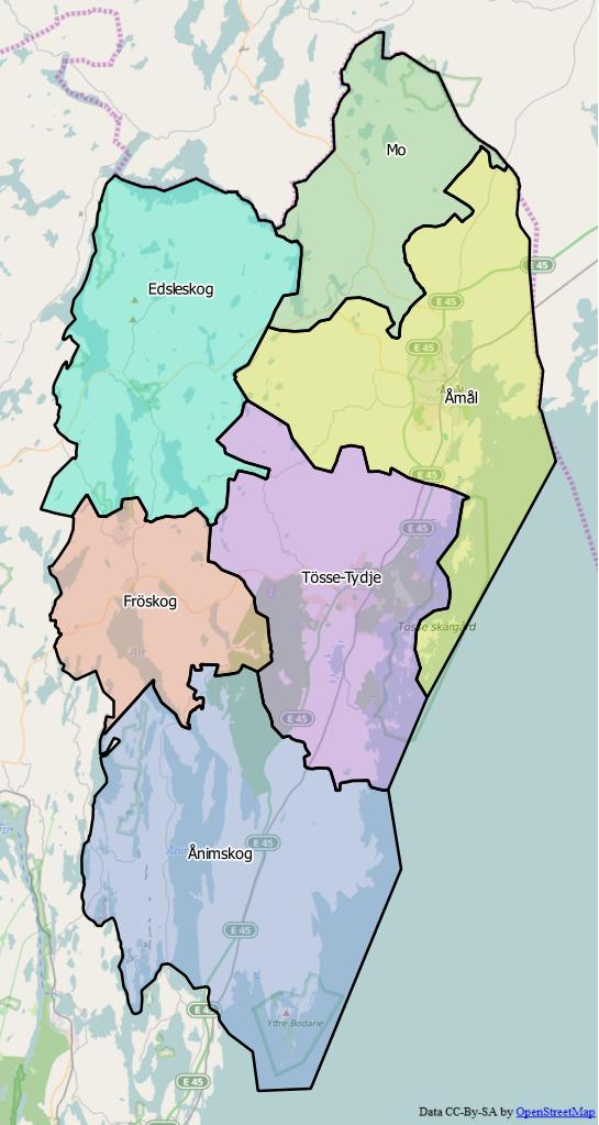 Svenska: Distriktsindelningen i Åmåls kommun