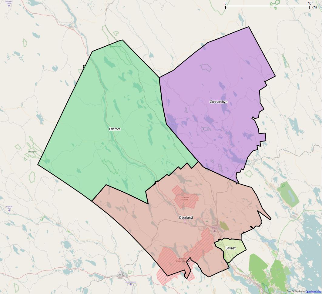 Svenska: Distriktsindelningen i Bodens kommun |