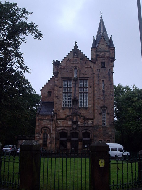The Scottish Baronial building was completed in 1879. The architect was Frank Stirrat, the winner of a competition for its commission. The boundary between the two burghs bisected the building allowing courtrooms and offices for each burgh to have separate access. The building was renamed Dixon Halls when Crosshill and Govanhill were annexed by Glasgow in 1891. |