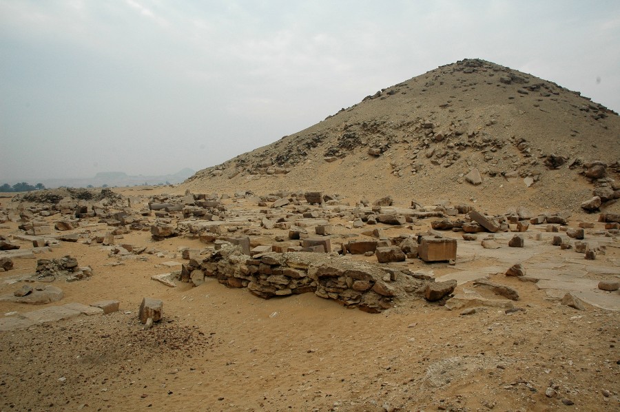 Deutsch: Die Pyramide des Djedkare-Isesi und der Totentempel östlich davon, späte 5. Dynastie, ca. 2400 v. Chr., Saqqara-Süd.