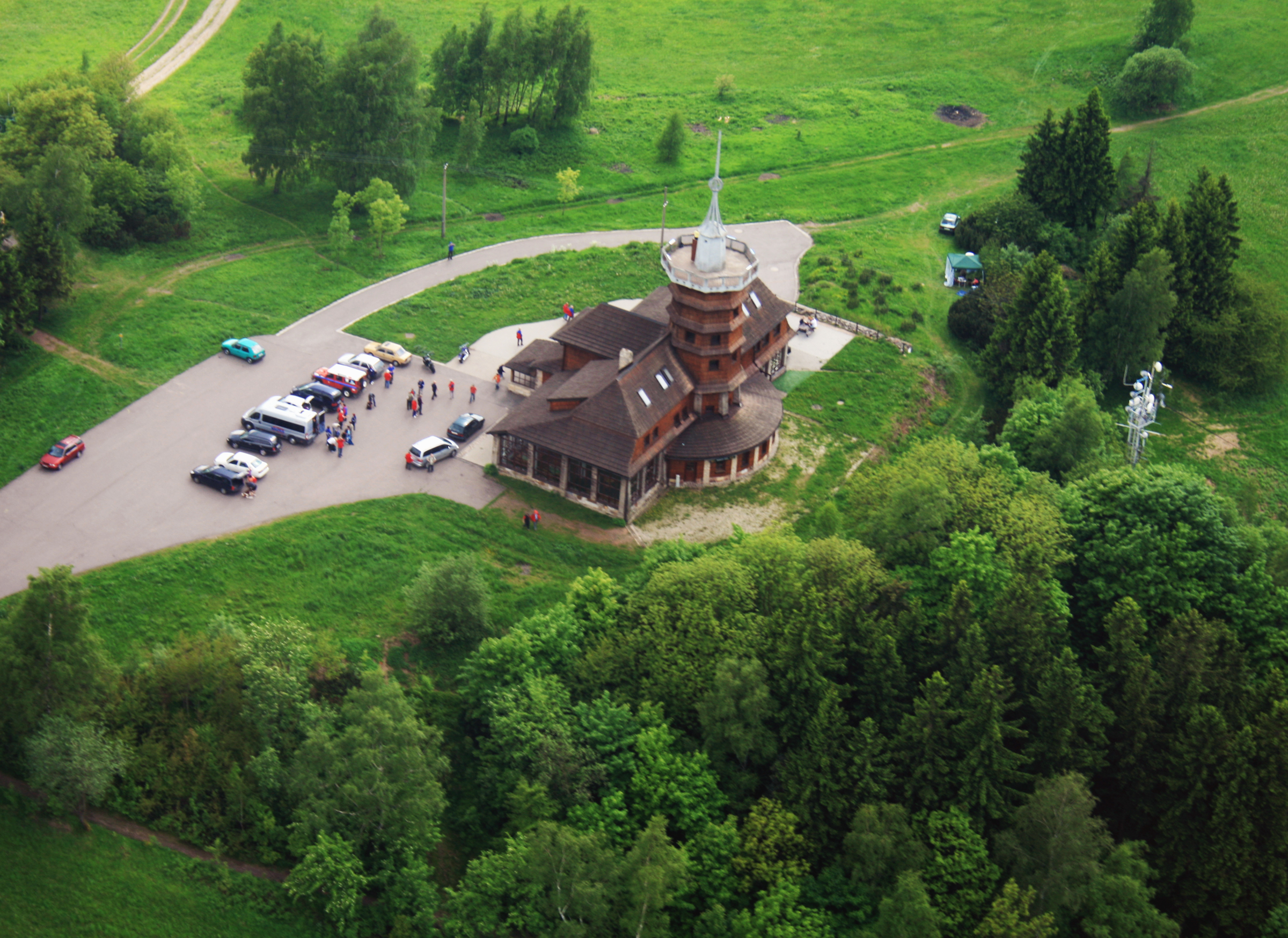 English: Cottage of Jirásek (Jiráskova chata) near of Dobrošov from air, eastern Bohemia, Czech Republic