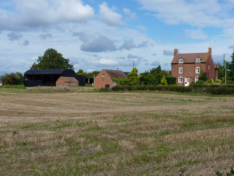 Across the cropped wheatfield to Donnington Farm |