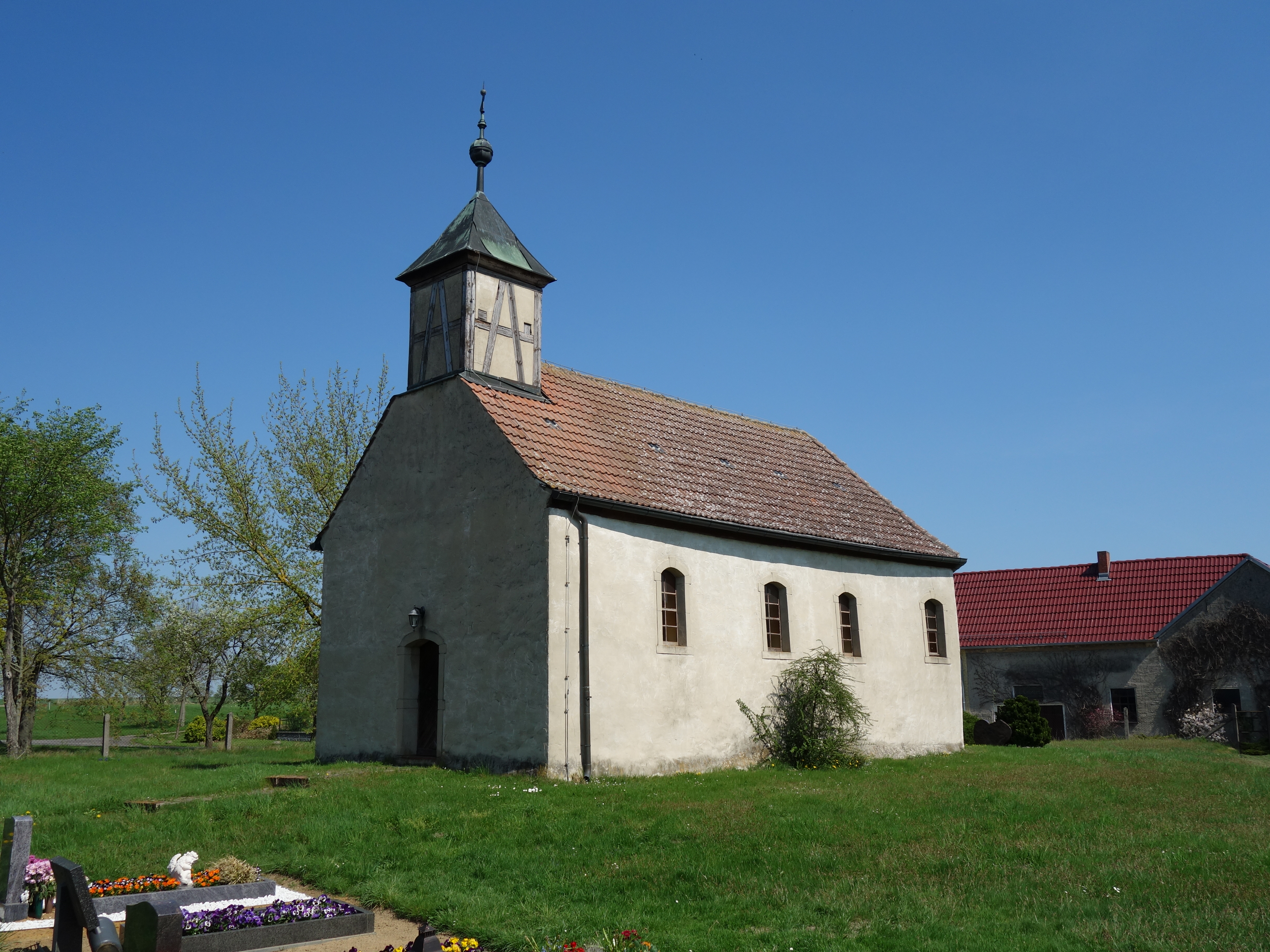 English: South-western view of the church in Schmögelsdorf , Treuenbrietzen municipality, Potsdam-Mittelmark district, Brandenburg state, Germany