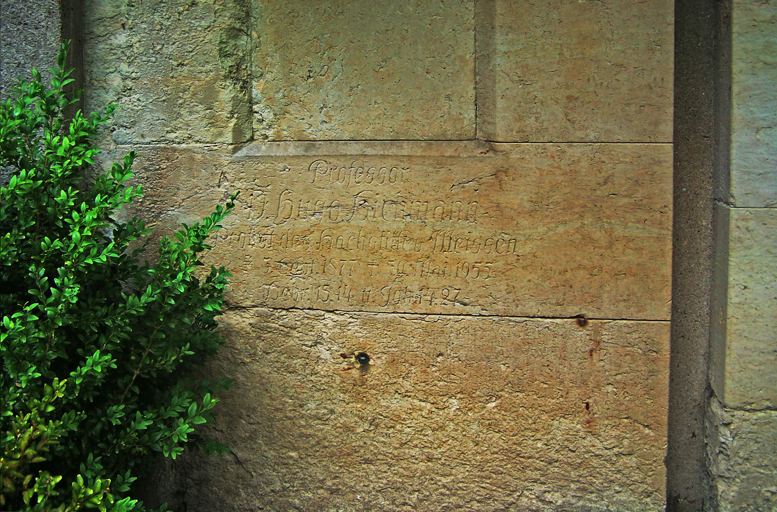Deutsch: Grab von Hugo Hickmann auf dem Friedhof in Langebrück (Dresden) mit Inschrift: Prof. D. Hugo Hickmann, Probst des Hochstiftes Meissen, * 3. Sept. 1877, † 30. Mai 1955, Hebr. 15.14 u. Joh. 14.27" |