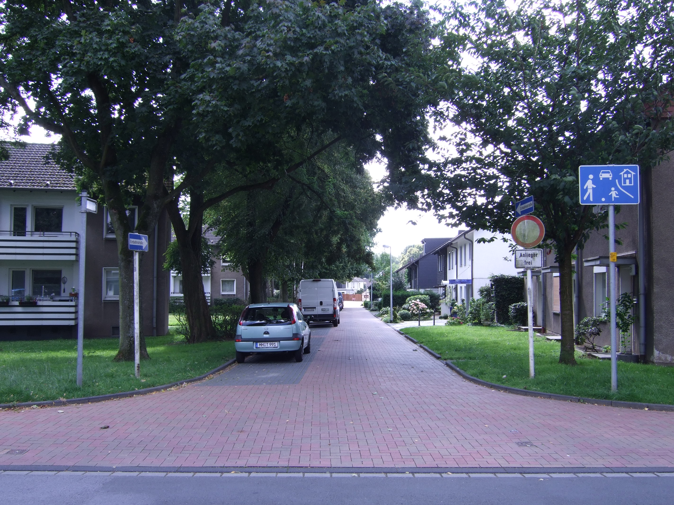 English: Drosselweg in Mellinghofen with traffic sign and red bricks as traffic-calming measures.