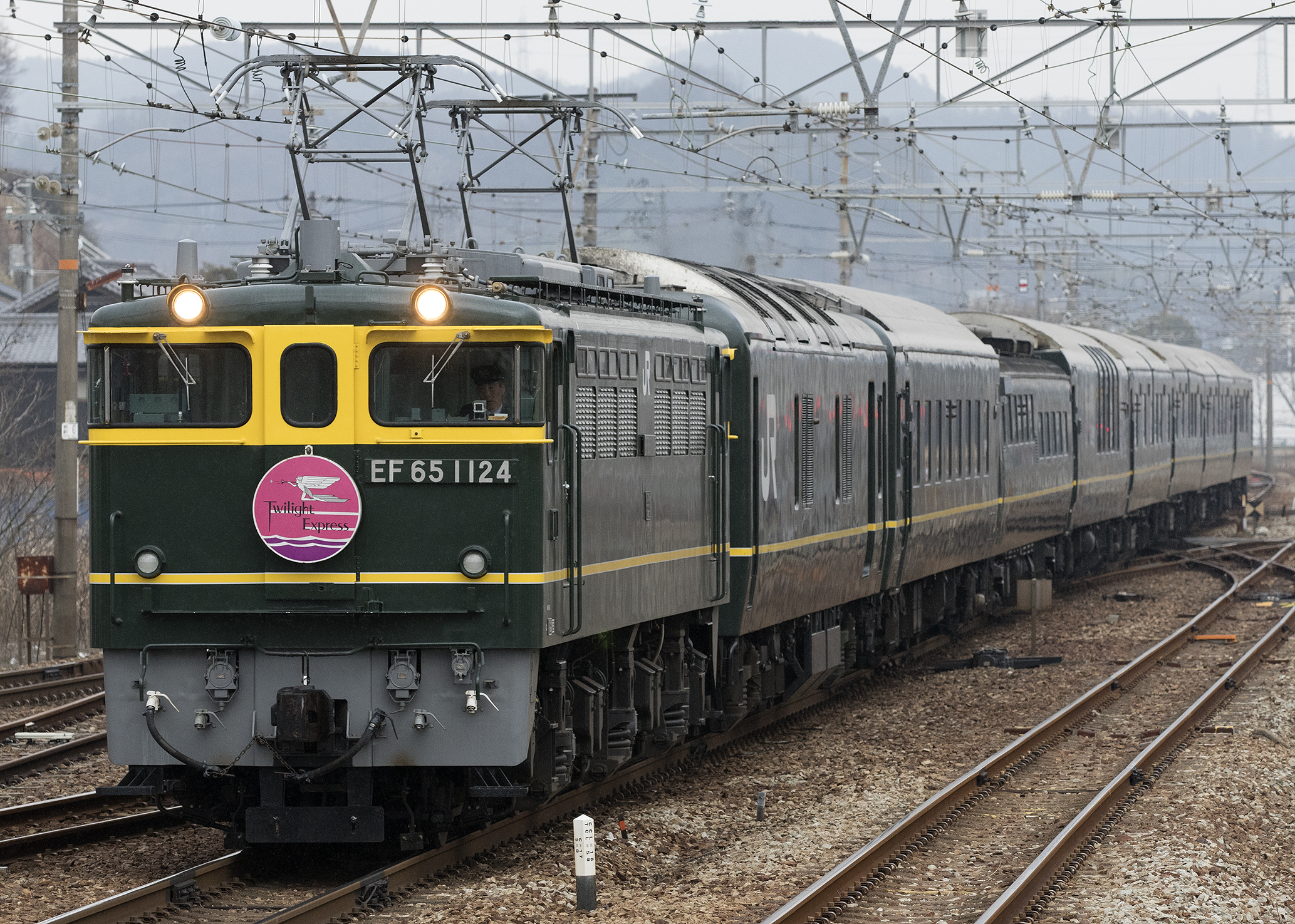 (Japanese) English: JR West Class EF65 electric locomotive EF65 1124 hauling the the Twilight Express rake on a special cruise service قالب:Taken with |