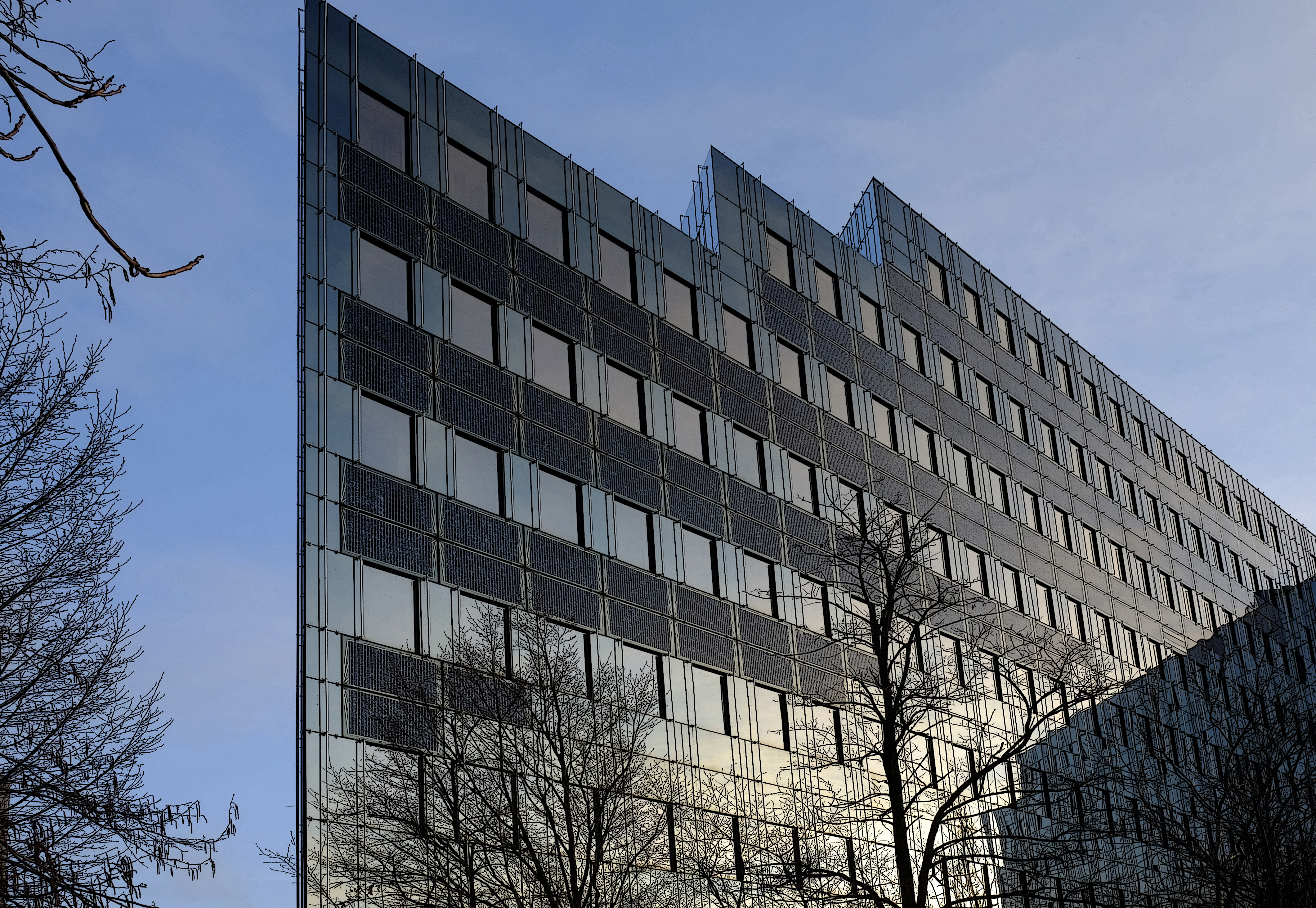 Deutsch: Bürogebäude in Berlin-Moabit, Kaiserin-Augusta-Allee 108-113, das im Jahr 1994 nach dem damaligen ökologischen Standard gebaut wurde. |