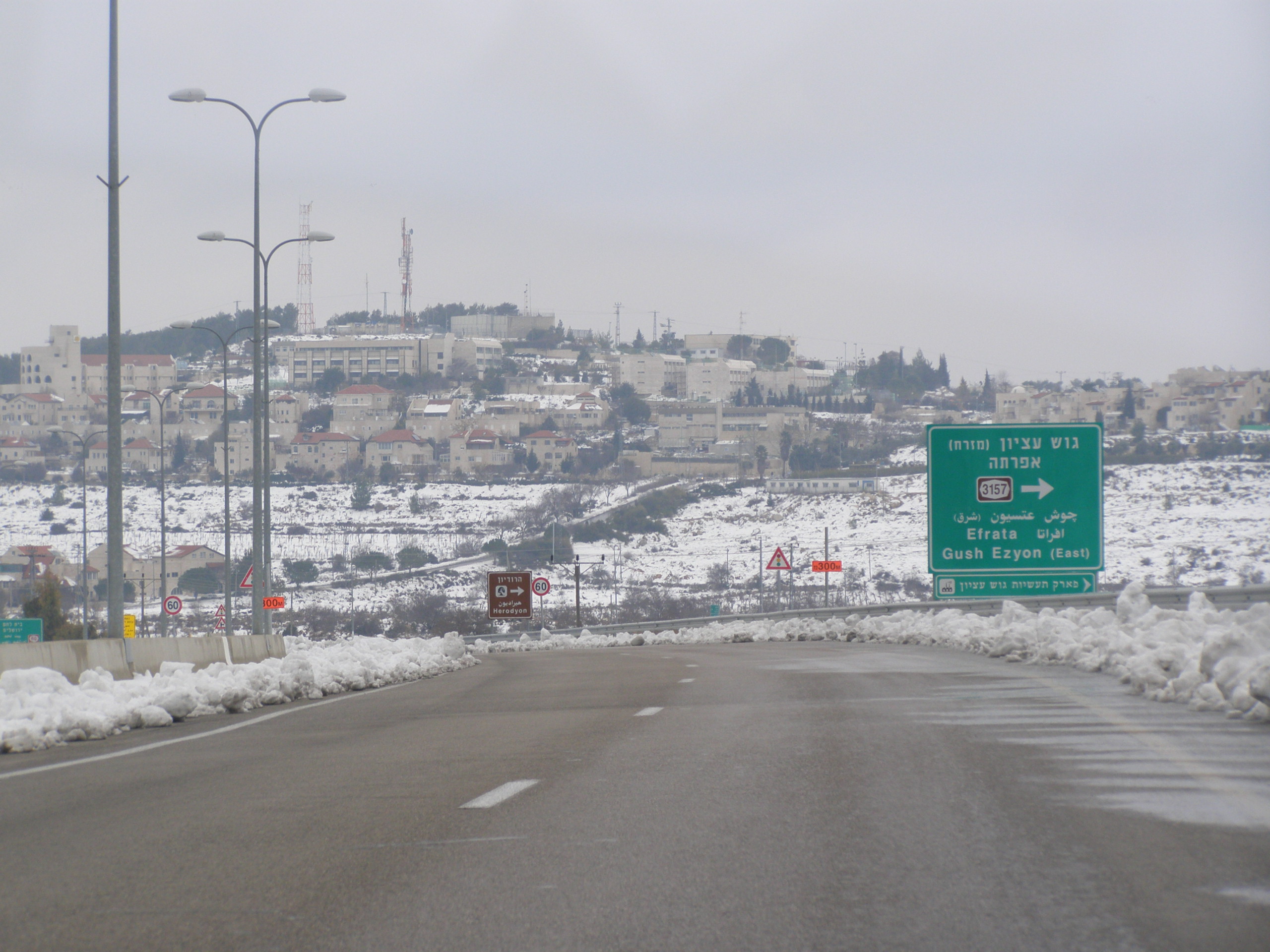 بالعبرية: מראה היישוב אפרת בשלג |
