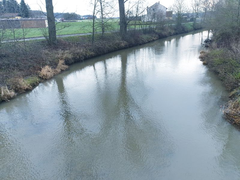 Deutsch: Ehebach in der Nähe von Stübach. Der Fluss fließt nun östlich Richtung Ehe. |