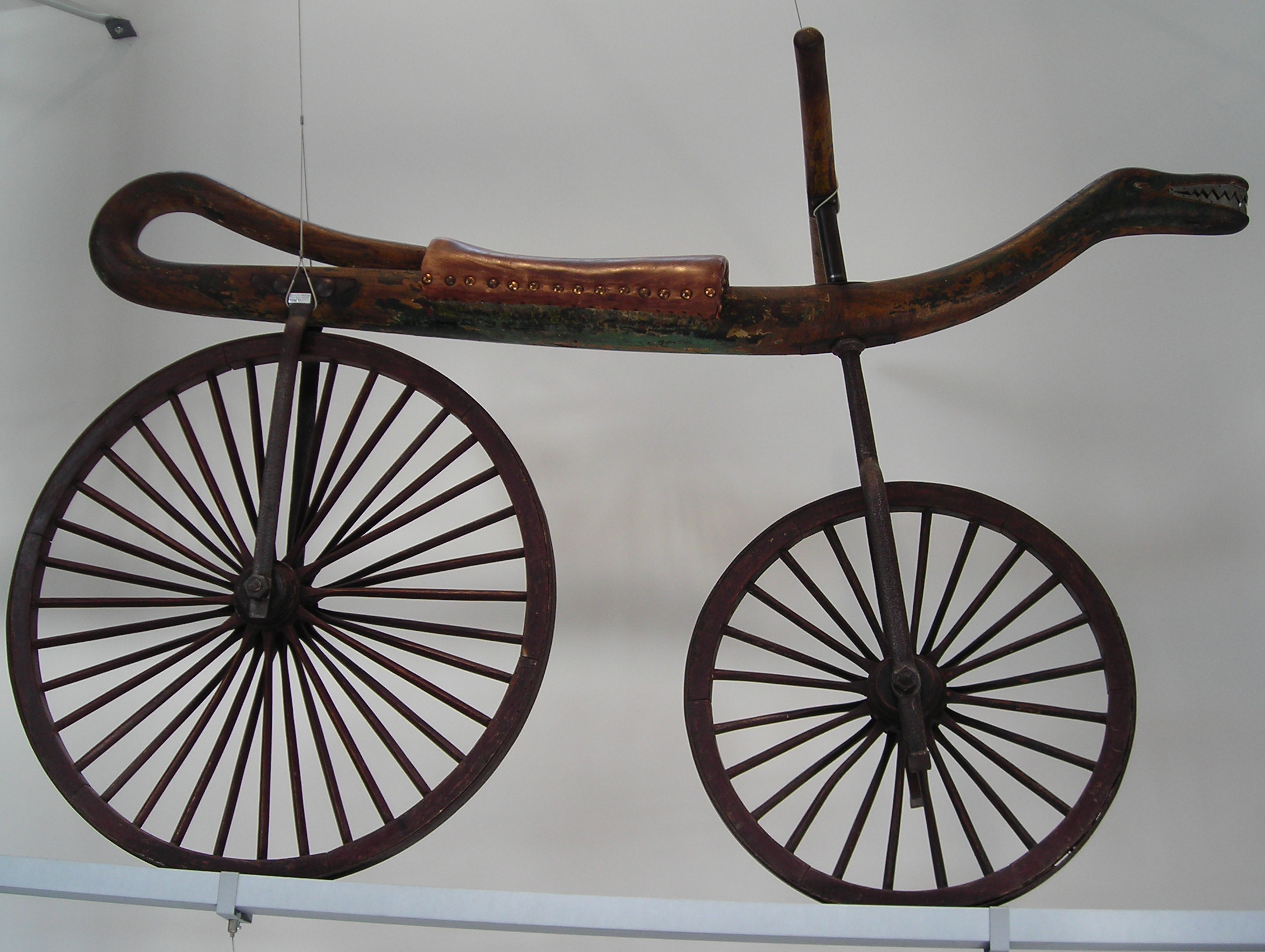English: Draisienne with Dragon's or Reptile's head, probably Paris, around 1825, displayed at Deutsches Museum Verkehrszentrum Munich, Germany