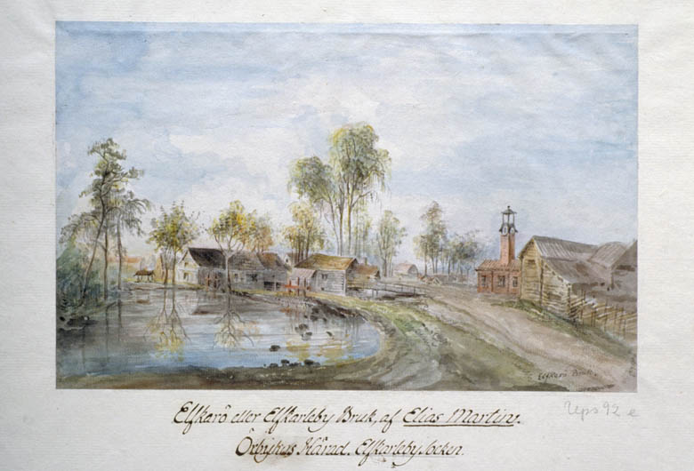 | Description | Älvkarleö bruk år 1798. Elfkarö eller Elfkarleby Bruk, af Elias Martin. Örbyhus Härad. Elfkarleby Socken. Akvarellerad pennteckning av sv:Elias Martin. | |||