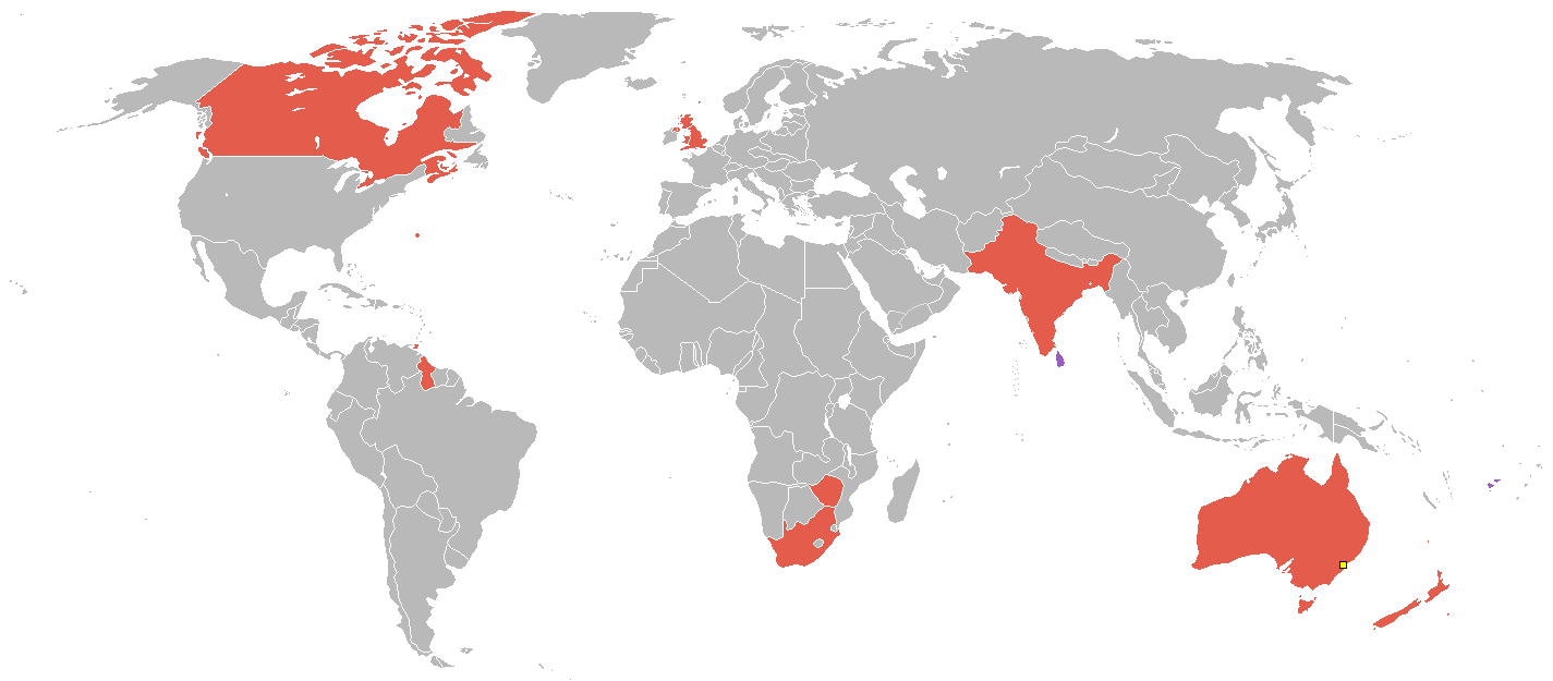 Countries which participated in the 1938 British Empire Games, derived from blank world map.
