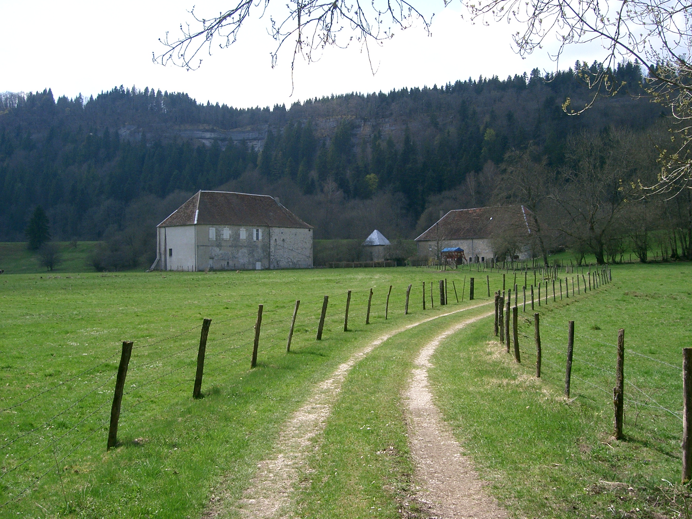 Français : Bâtiments actuels à l'emplacement de l'ancienne abbaye de Balerne (Jura - France) |
