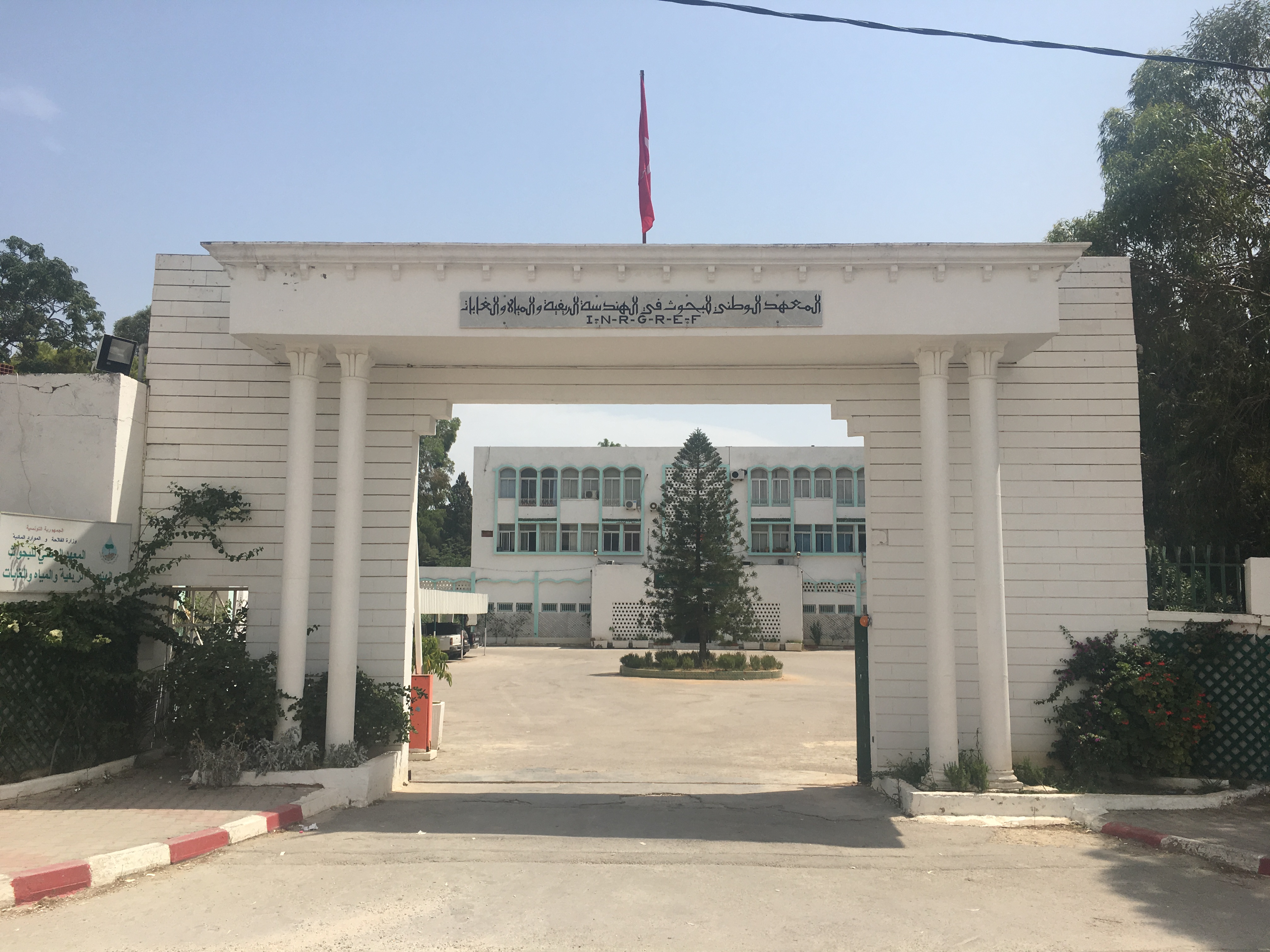 العربية: مدخل المعهد الوطني للبحوث في الهندسة الريفية والمياه والغابات، المنزه، تونس العاصمة، 2019. |