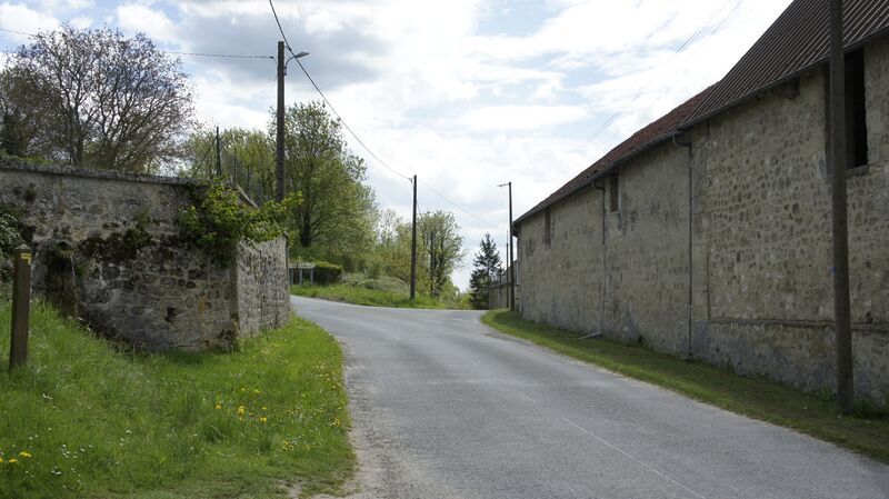 Français : Entrée du village, source et départ de promenade .