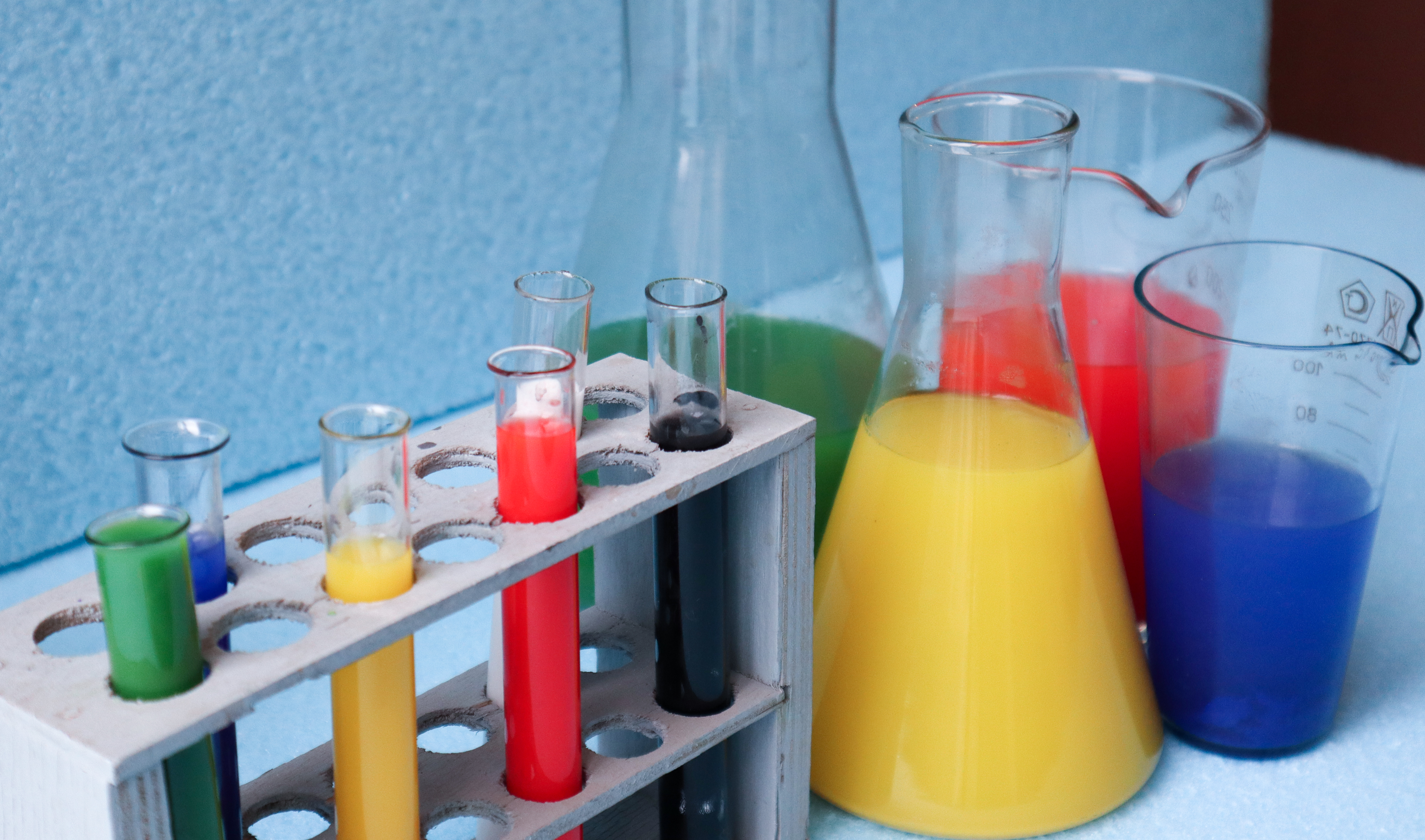English: Equipment and glassware for test product and colorfull solution in the chemistry laboratory English: Equipment and glassware for test product and colorfull solution in the chemistry laboratory |
