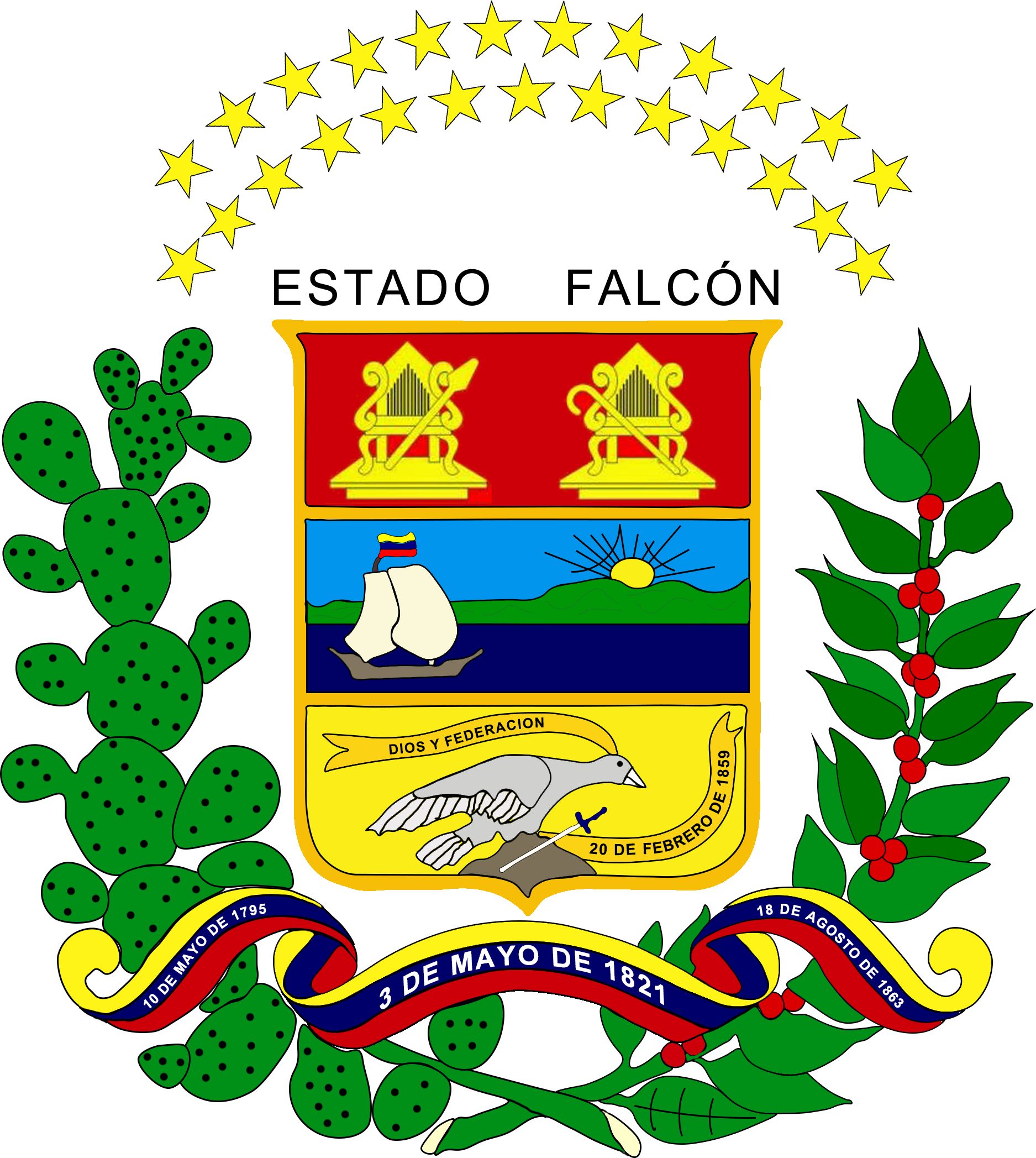 Español: Escudo del Estado Falcón. English: Coat of arms of Falcón state. |
