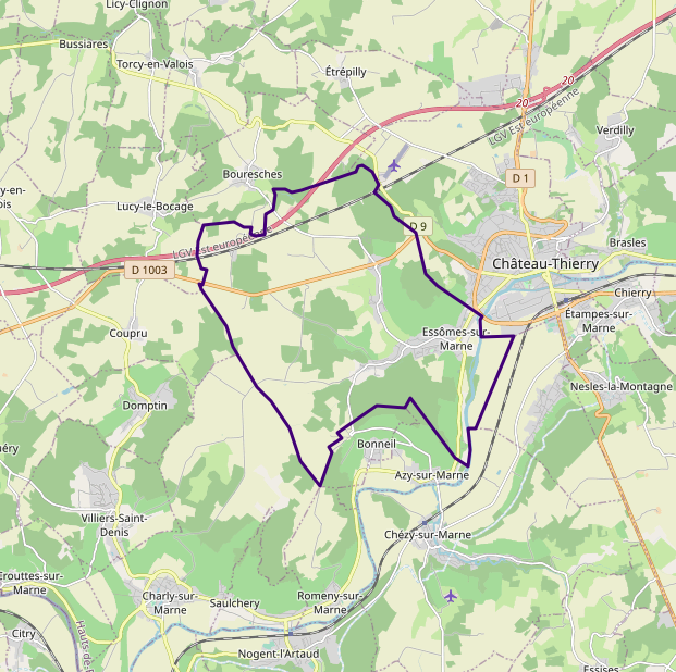 Français : Carte OSM d'Essômes-sur-Marne, Aisne |