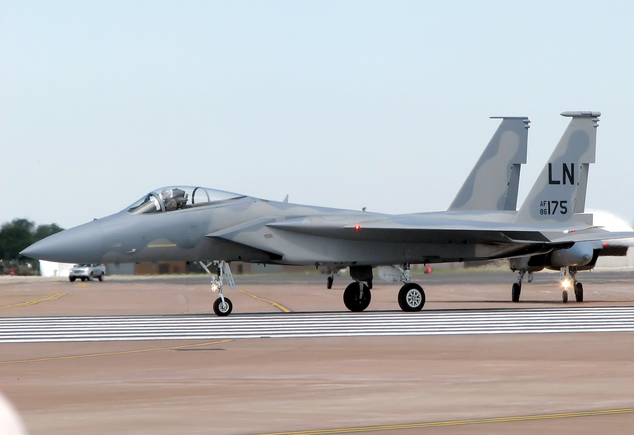 | Description | F-15C Eagle (identifier 86-0175/LN), of the United States Air Force, taxis for takeoff at the Royal International Air Tattoo, RAF Fairford, Gloucestershire, England. | ||