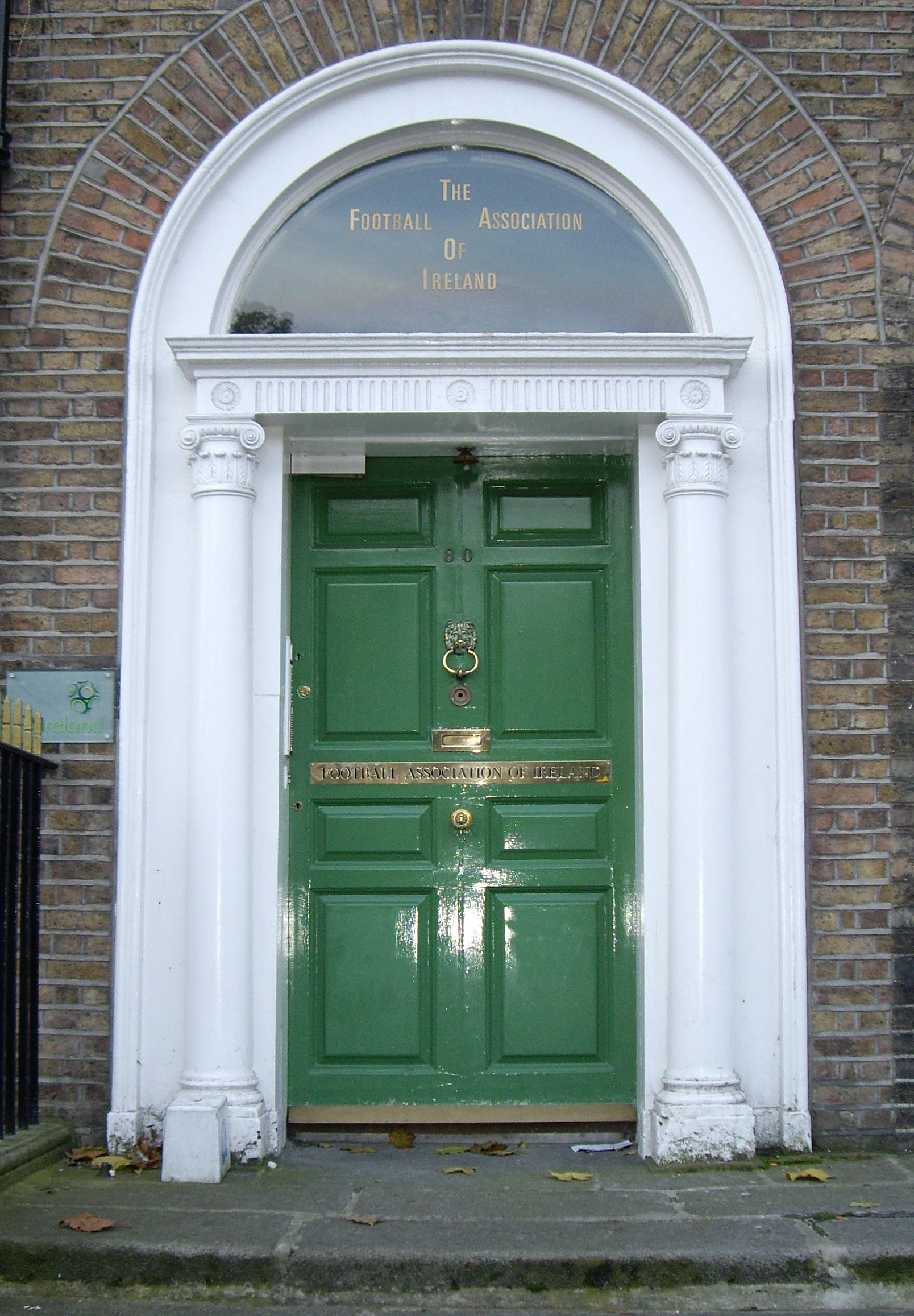Door of Football Association of Ireland HQ, 80 Merrion Square, Dublin 2, Ireland Note: in December 2007, the FAI moved to new headquarters near Blanchardstown. |