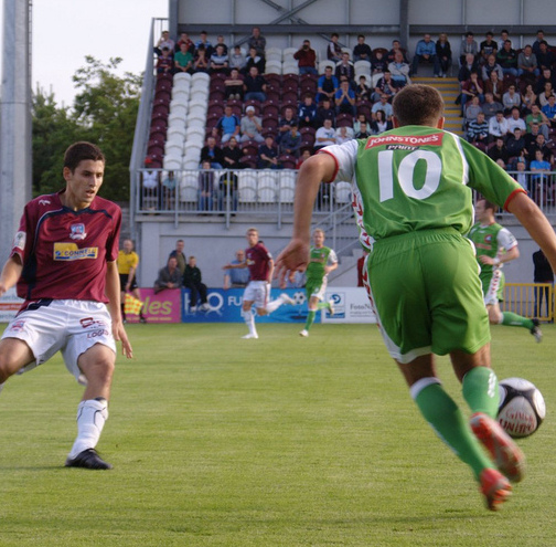 English: 'Faz' Kudozovic runs at a defender with the ball. |