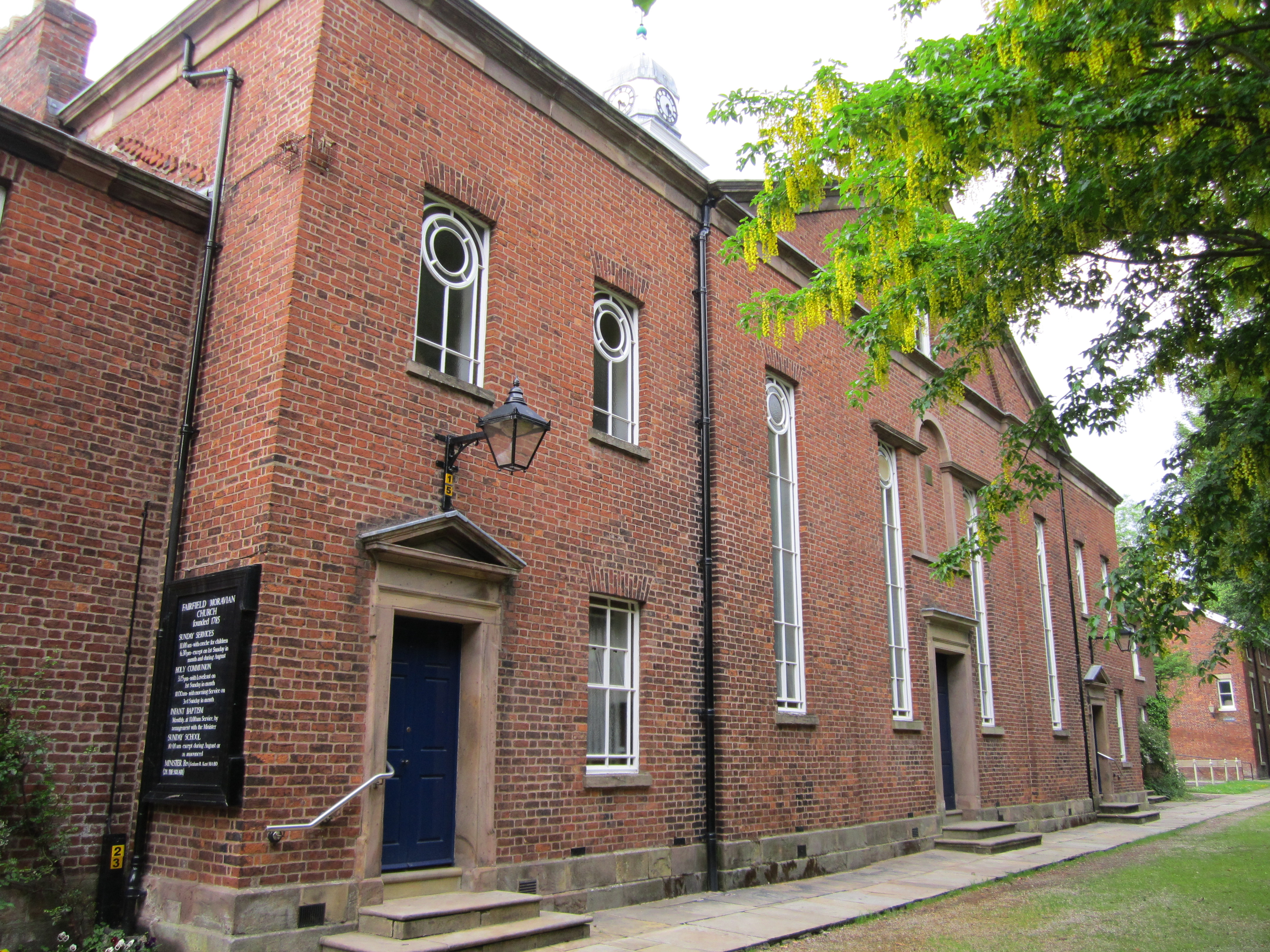 English: Fairfield Moravian Church, Fairfield Square, Droylsden, Greater Manchester (formerly Lancashire) |