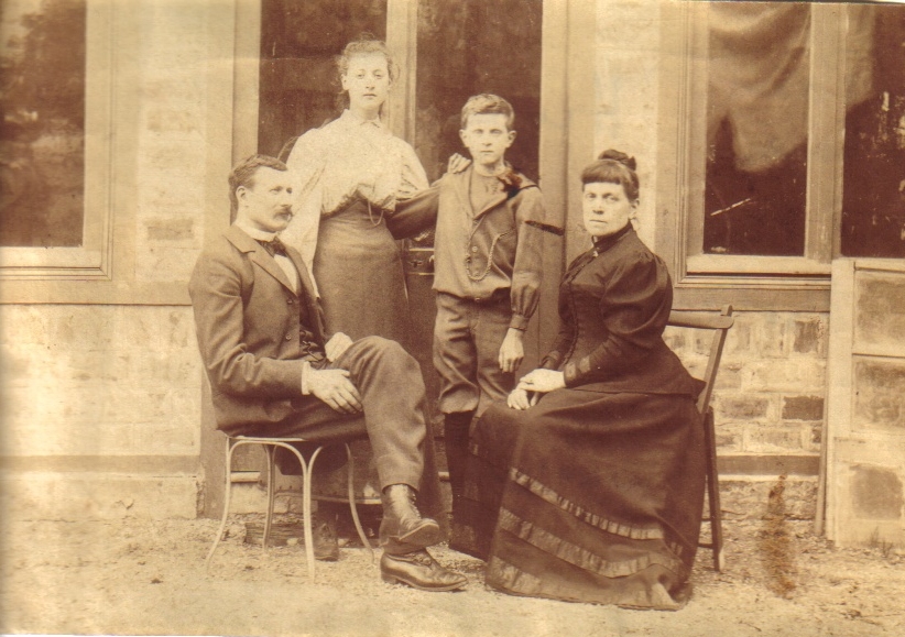 Français : Photographie de famille des Hubert. De gauche à droite : Paul le père, Sabine l'ainée, Roland le benjamin et Louise Milliet-Hubert la mère. |