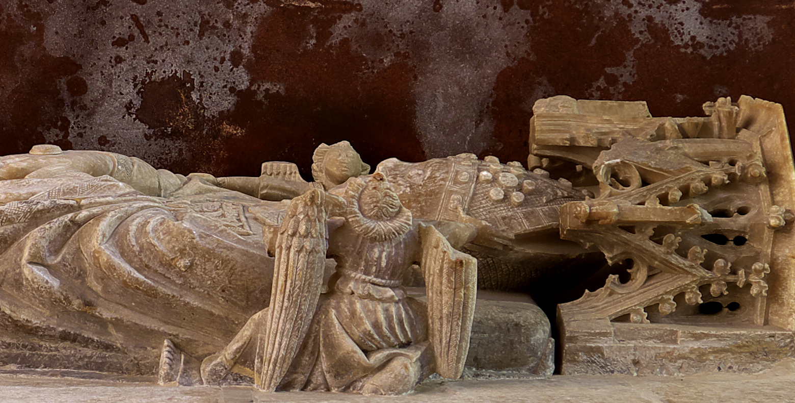 Español: Capilla de los Santos Lorenzo, Prudencio y Catalina, Catedral de Nuestra Señora de la Huerta de Tarazona. Sepulcro de Fernando Pérez Calvillo (†1404), obispo de Tarazona (1391-1404) y cardenal (1397) de los Santos XII Apóstoles. Sepultura tallada en alabastro de Pere de Corcan (1405). |