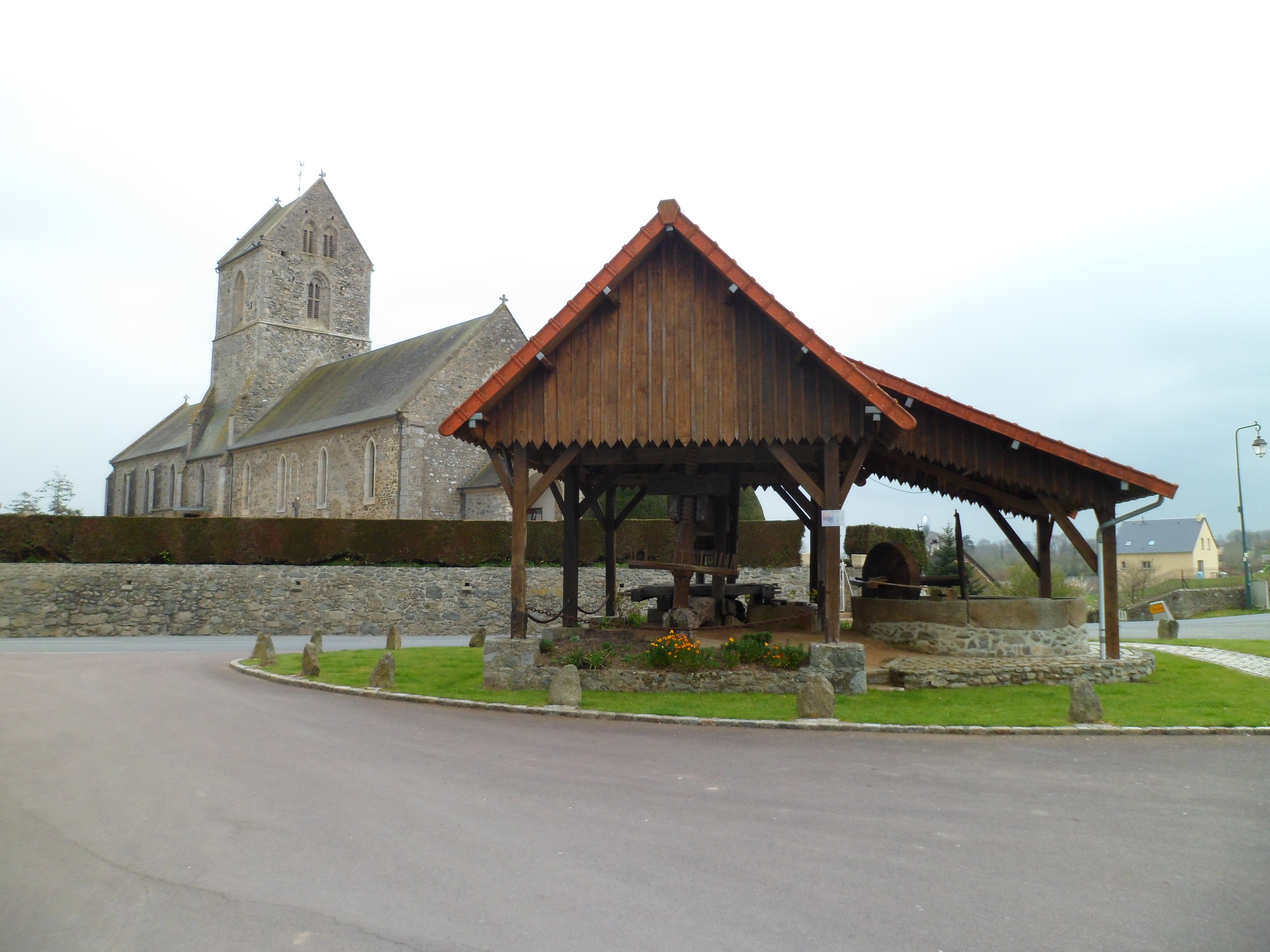 ملف:Feugères - Pressoir et église Saint-Pierre.JPG