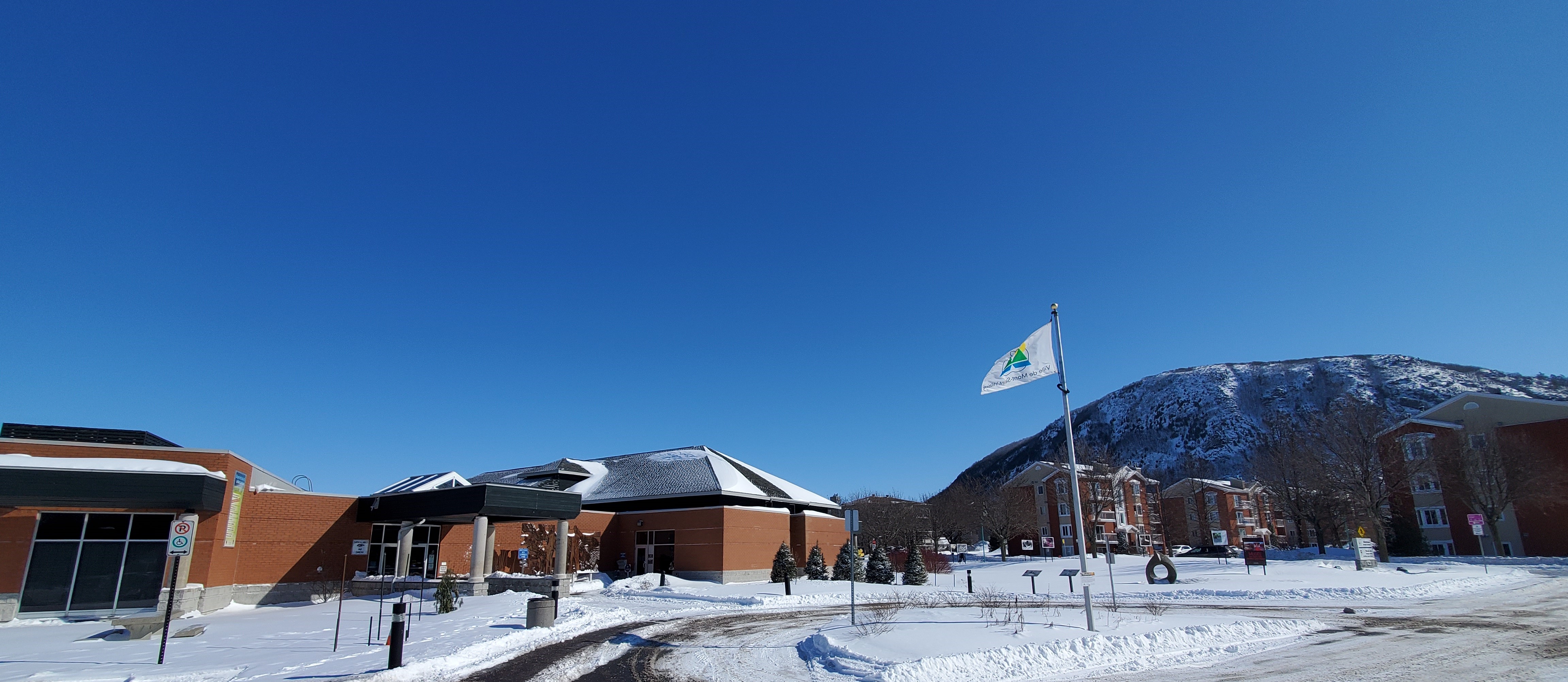 English: Fine art museum of Mont-Saint-Hilaire, with the mountain in the background.
