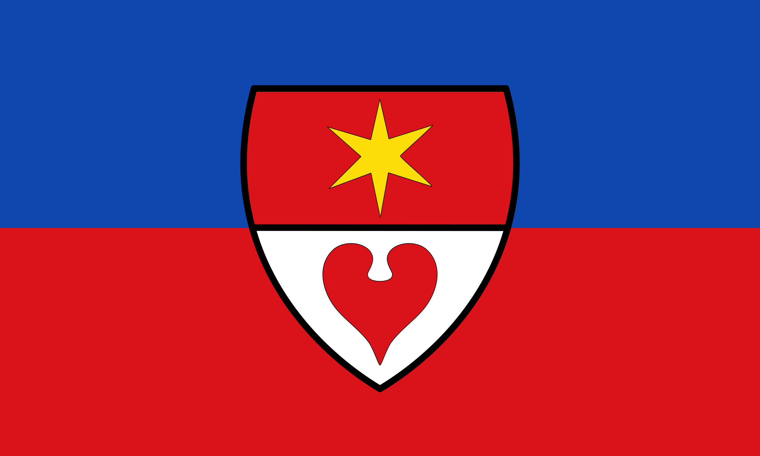 Beschreibung der Flagge:„Die Flagge ist blau-rot geteilt mit dem aufgelegten Wappen in der Mitte.“