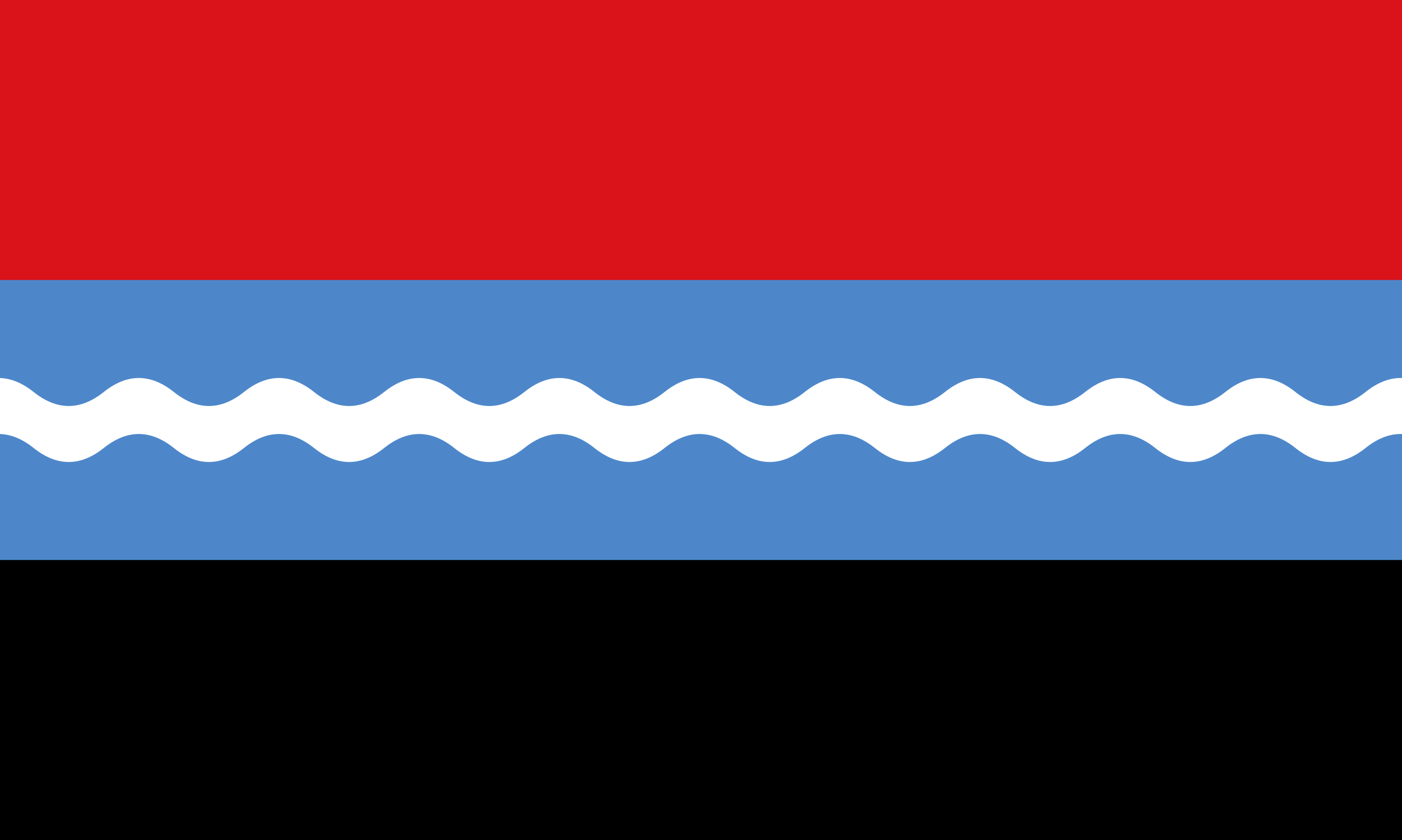 Beschreibung der Flagge:„Die Gemeindeflagge führt die Farben rot, hellblau, durchzogen von einer weißen Wellenleiste, und schwarz.“