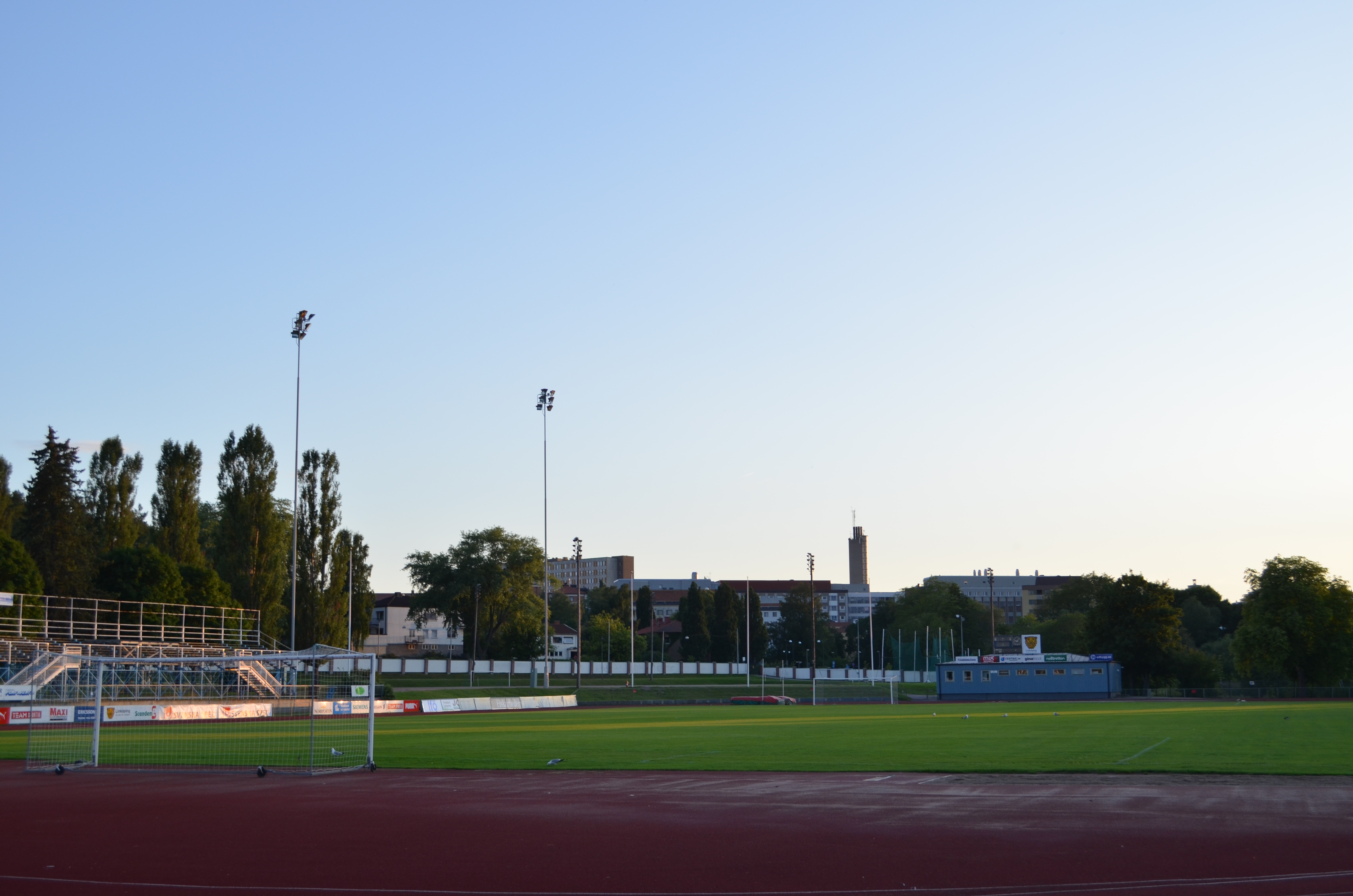 Svenska: Folkungavallen i Linköping fotograferad under Kruosio och Mannen av börds sightseeing i Linköping. I bakgrunden syns sjukhusets skorsten. |