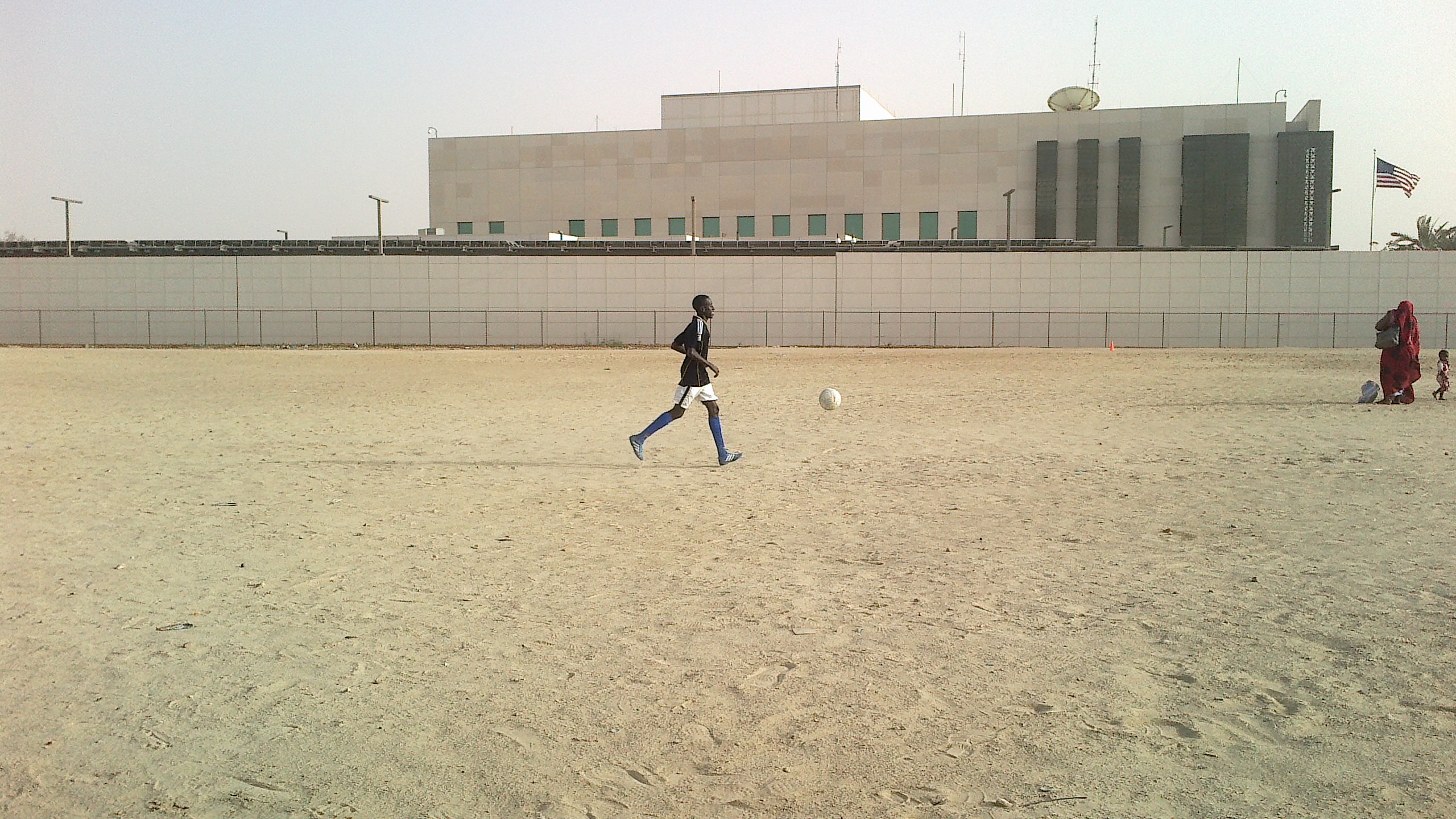 ملف:Footballer and family in space outside the US Embassy, Nouakchott.jpg